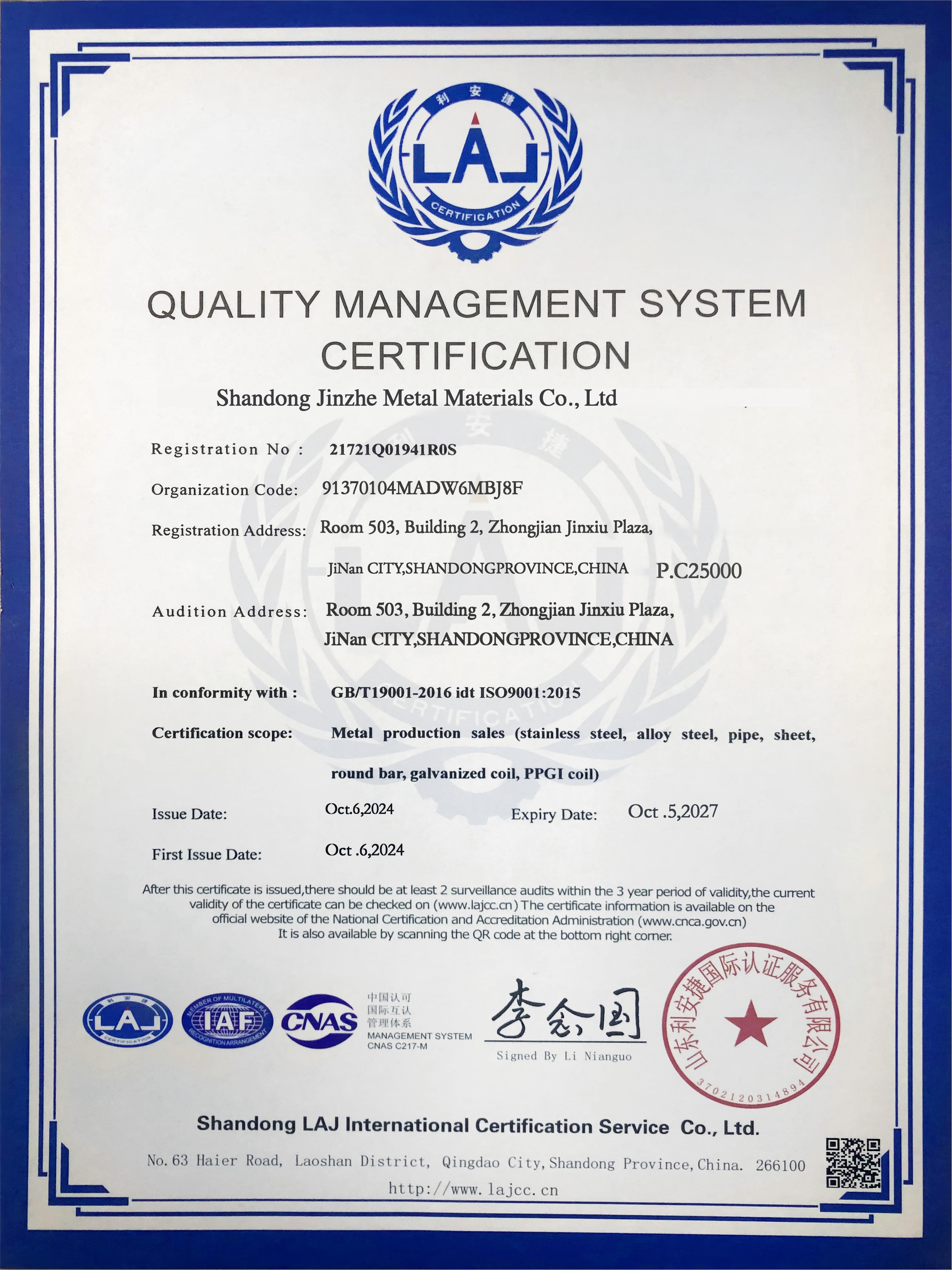 Founded in 2010, Shandong Jinzhe Metal Material Co.,Ltd is a professional steel manufacturer and global exporter rooted in Shandong’s core steel industrial zone. With over 15 years of experience, we have built a complete industrial chain covering steel production, deep processing, quality inspection and global logistics. Our main products include stainless steel, carbon steel, galvanized steel, aluminum and copper, serving more than 50 countries and regions around the world, and we are committed to becoming a reliable one-stop steel solution partner for global clients.
